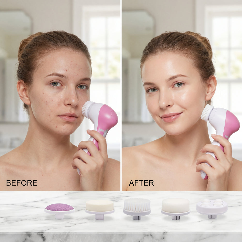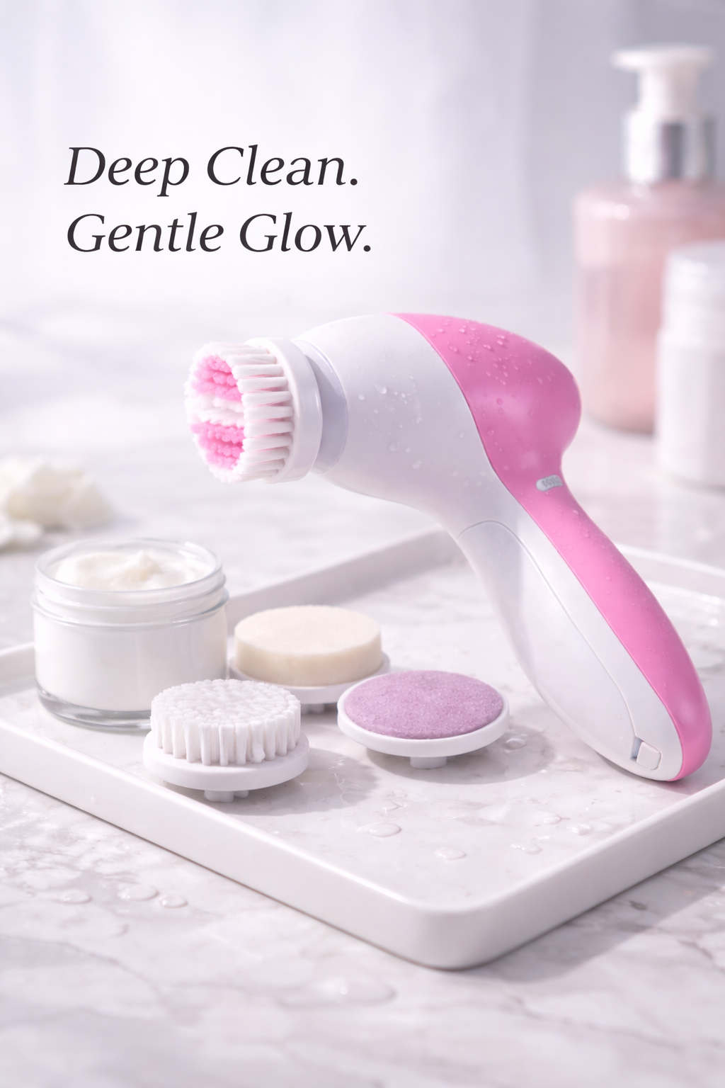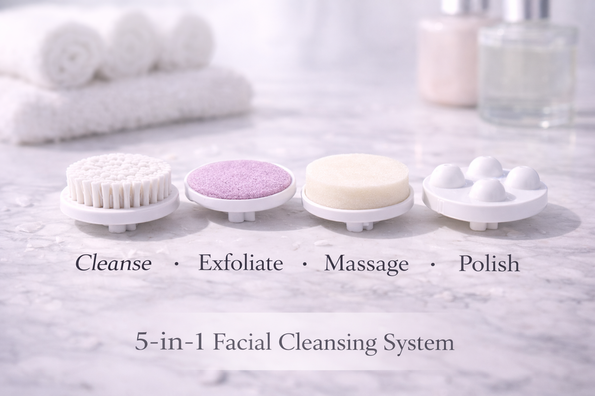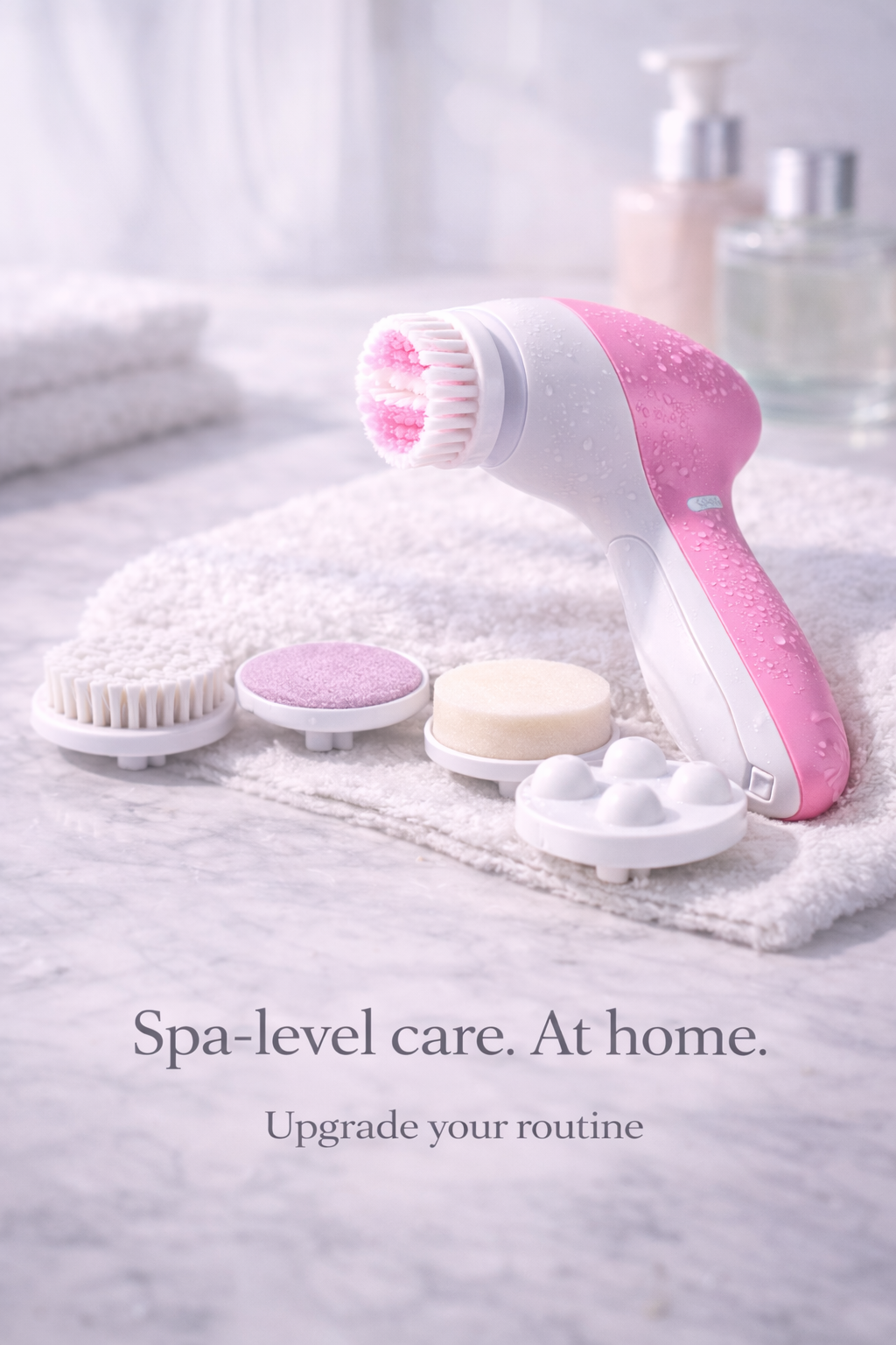 Transform your routine with a complete 5-in-1 spa system. Unlike basic cleansing, our rotary technology penetrates pores to remove impurities and boost circulation, leaving skin smoother and ready to absorb serums.